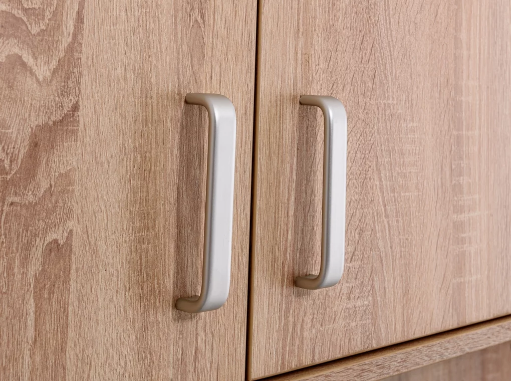 A képeken lévő szekrény 160 cm-es ágyhoz, Bardolino Natúr Tölgy (H1145 ST10) színben; az ágy Bardolino Natúr Tölgy (H1145 ST10) színben és ALFA20 szövettel készült.