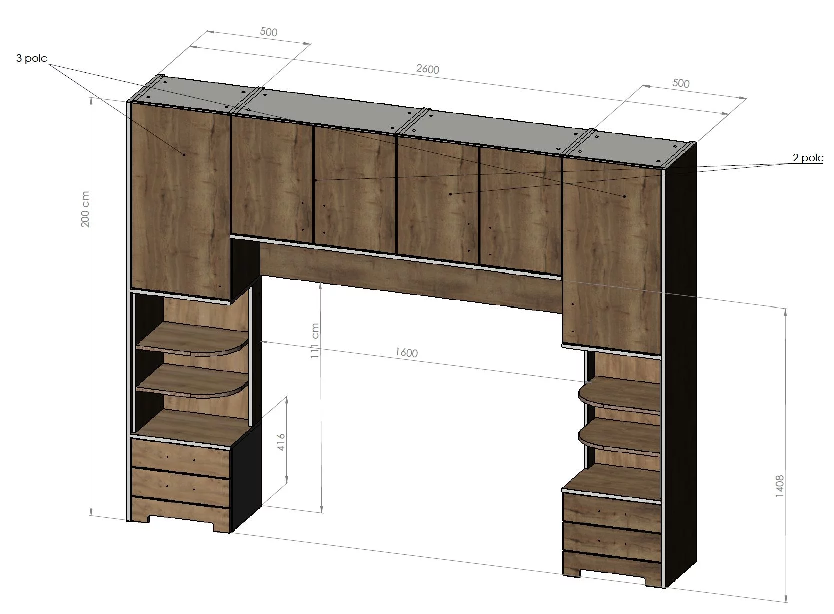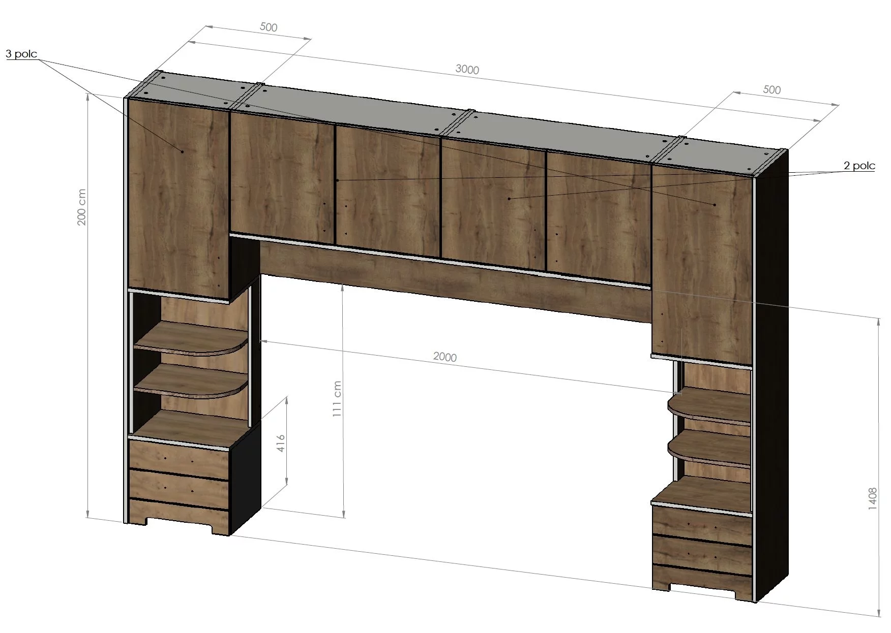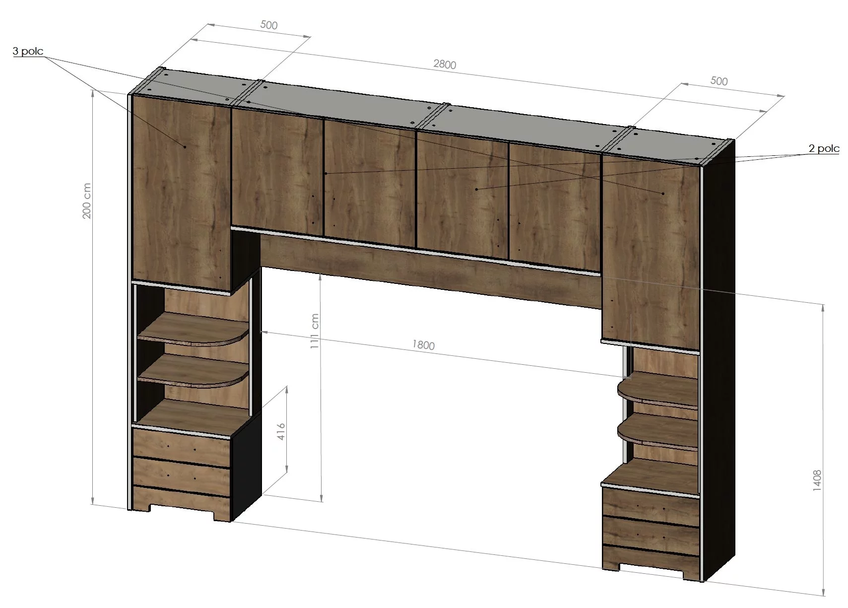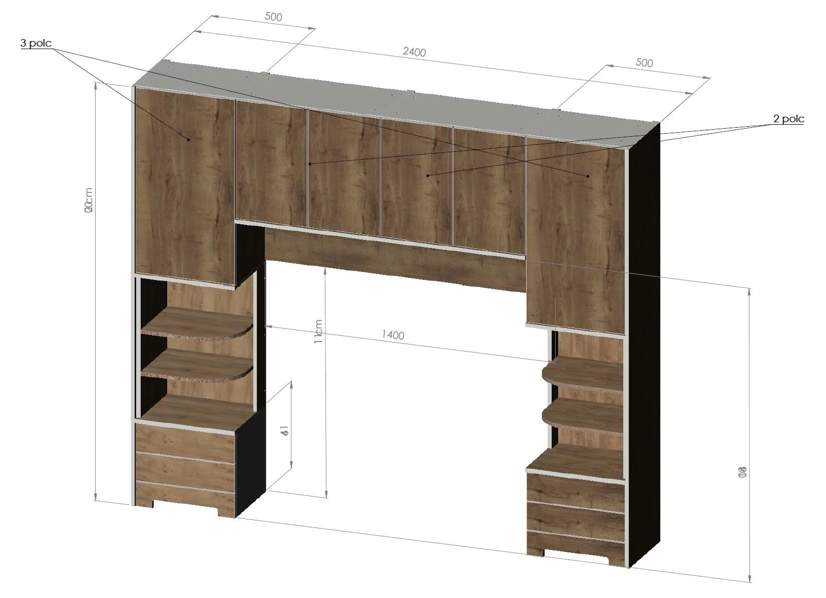 Az áthidaló szekrény a képen látható formában rendelhető, a 2 álló rész közötti rész (és ezáltal a felső szekrények mérete is) választható. A képeken REVTOCIA CORTINA ÁGY látható a szekrénybe helyezve, ennek mérete pontosan illeszkedik a szekrénybe, ezért ezzel ajánljuk. Megrendelhető azonban más, akár meglévő ágyhoz is, kérjük ez esetben a meglévő ágyat pontosan mérjék le, hogy az elkészített szekrény valóban megfelelő méretű legyen !!!!