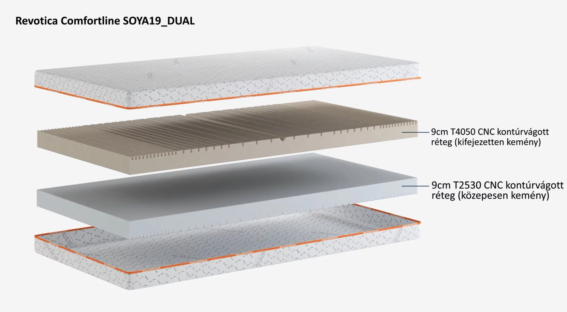 ✔Forgatható: kétféle keménységű CNC kontúrvágott 19 cm vastag habmatrac.