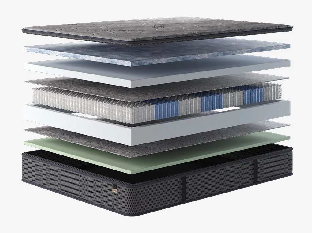 A matrac felső huzata double jacquard technológával számítógépvezérelt körkötőgépen készülő GRAPHENE huzat, melybe 400 gr/nm vastagságú töltővlies-t steppelünk.