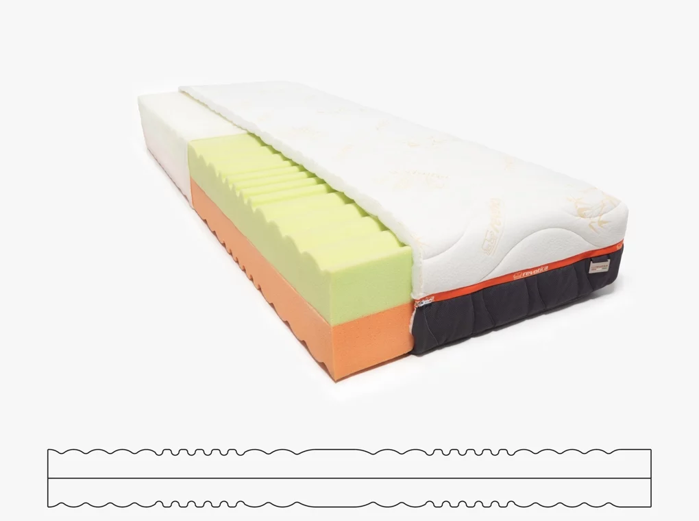 ✔A matracmag két felét összeragasztjuk, és a zónákat CNC technológiát használva alakítjuk ki. A használt vágásképet a termékfotók között találja meg.