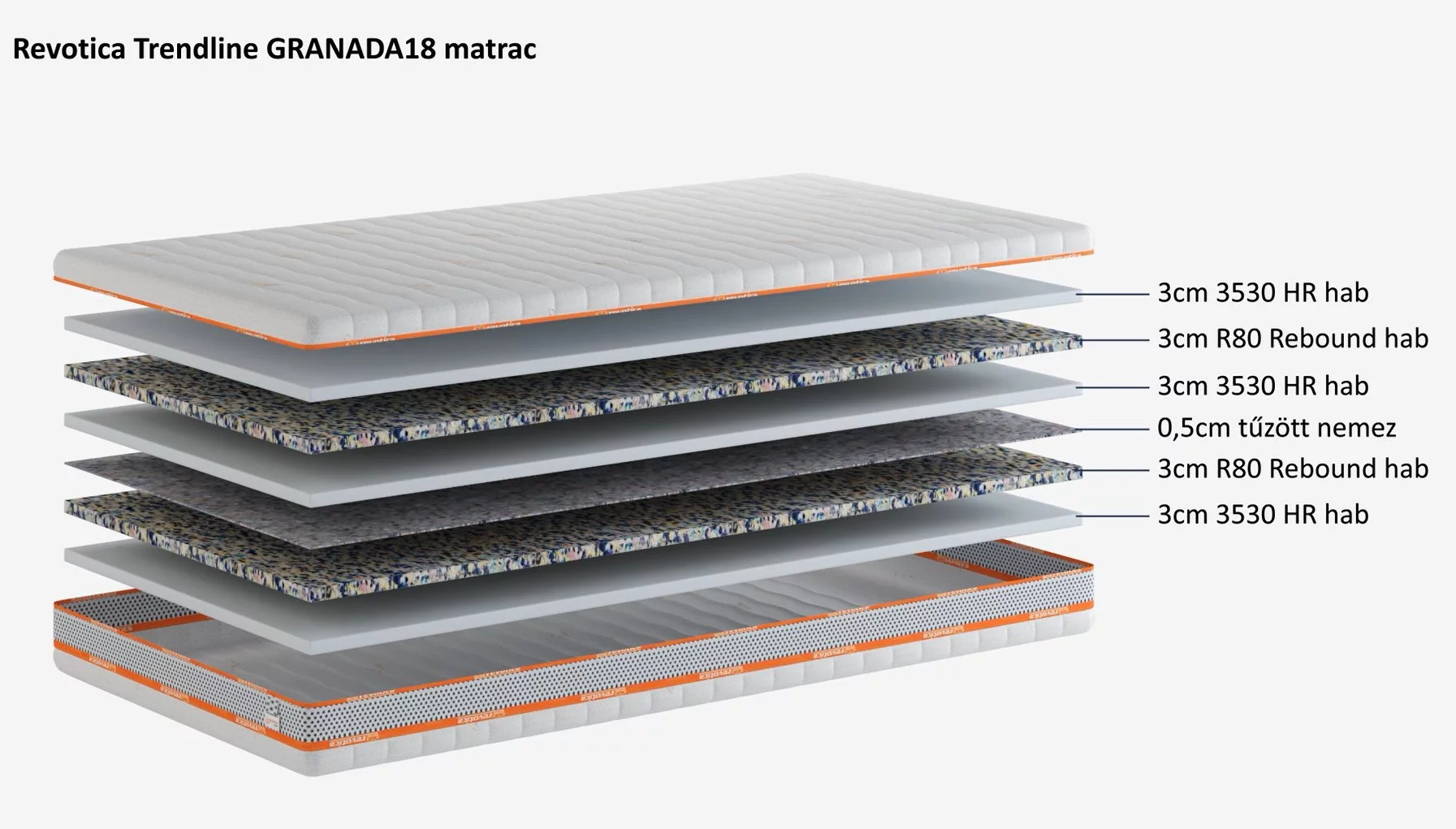 ✔18 cm magas matrac: szendvicsszerkezetű hideghab + rebound